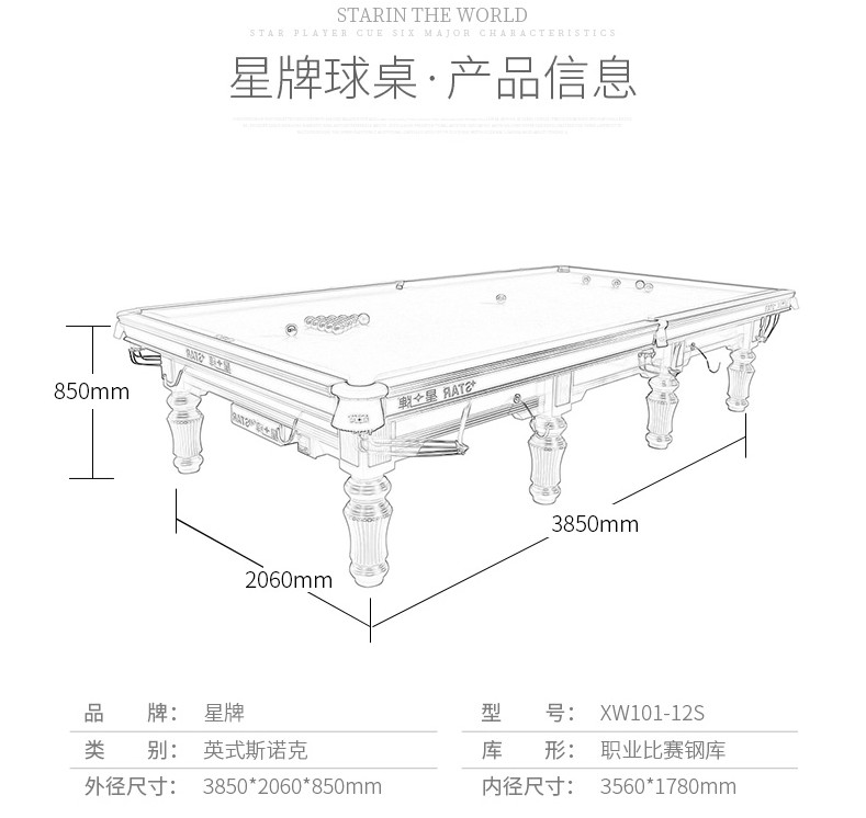 星牌 XW101-12S 英式斯諾克臺球桌