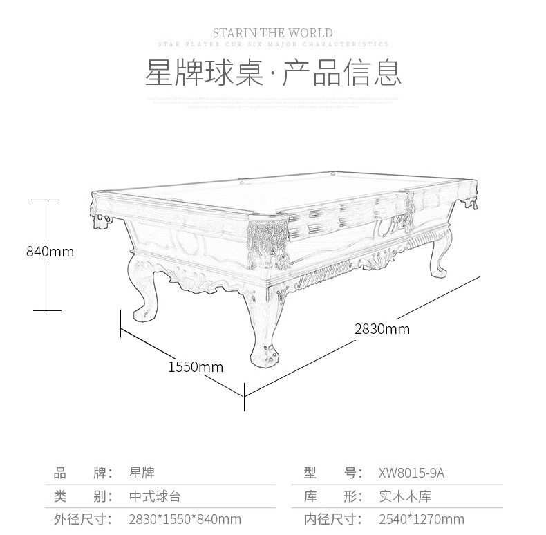 星牌 XW8105-9A 美式臺球桌