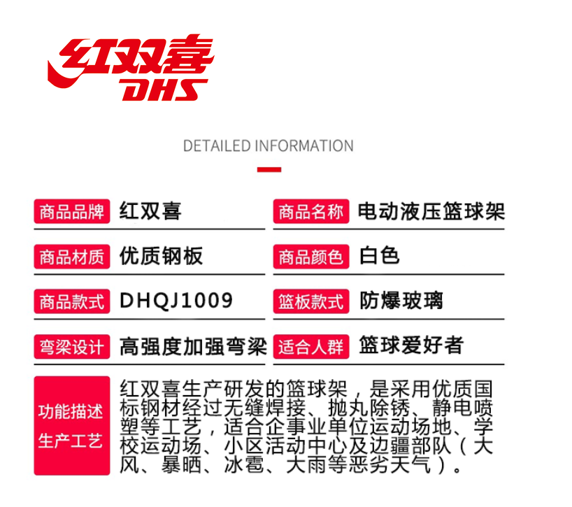 - 下一個產品:紅雙喜DHQJ1008 電動液壓籃球架